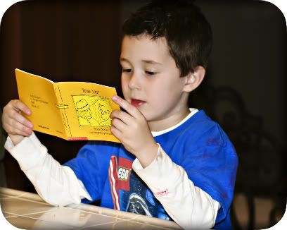 The kindergarten teacher in me is SO thrilled by this. Luke is reading. And even better........ he loves it. :)